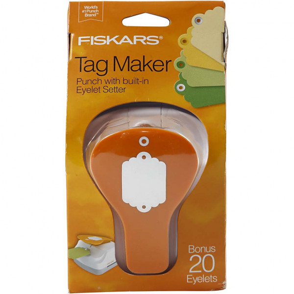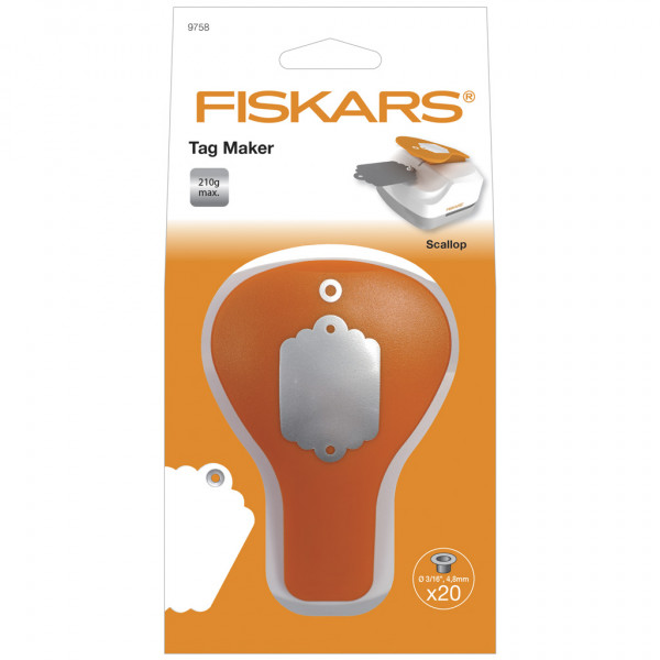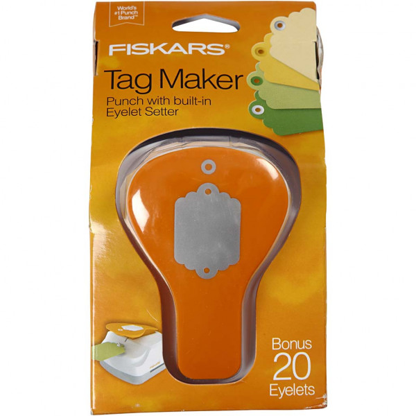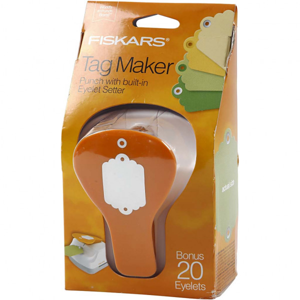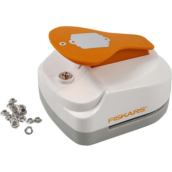 Paper punch from Fiskars for punching (max 210 g) tags with an eyelet hole and set of eyelets - 20 pcs. Included (Item No. 4415).