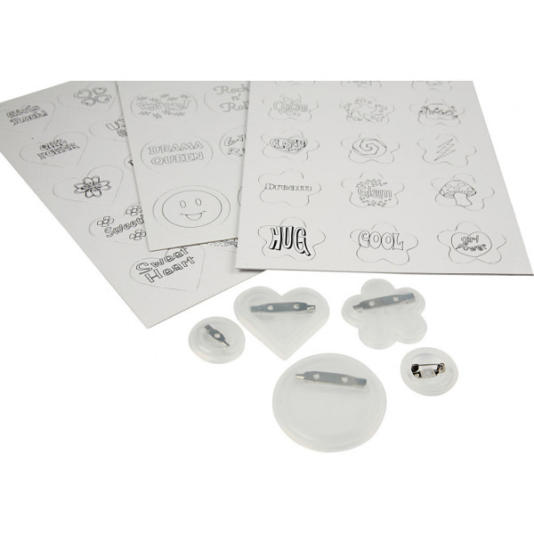 Badges with Drawing Templates, D: 2+4 cm, 100 pcs [HOB-51297]