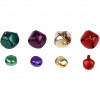 An assortment of metal bells in a variety of colours and sizes - with loop for hanging/sewing.