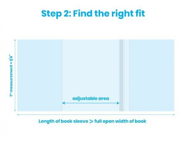For books 25.4 cm tall and up to 48.3 cm long (width of front and back cover + width of spine). The width of the clear cover is adjustable.