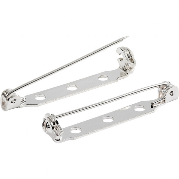 Brooch Backs, L: 30 mm, 100 pcs, silver-plated [HOB-600741]