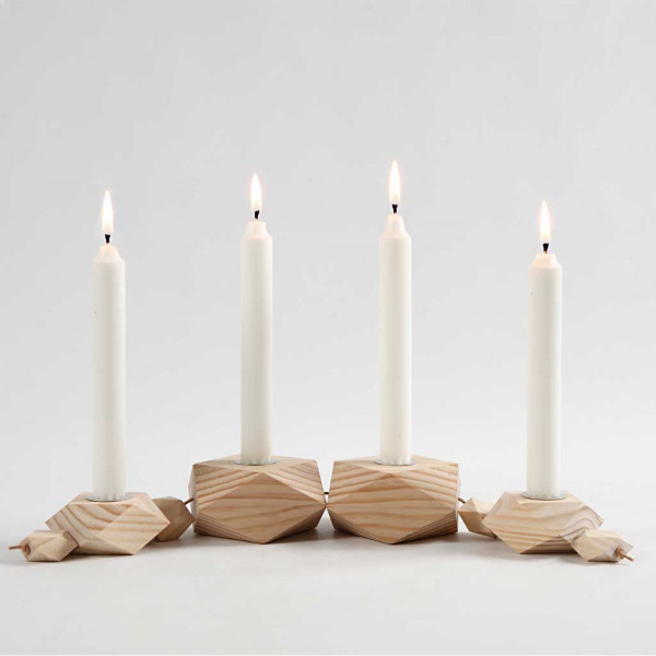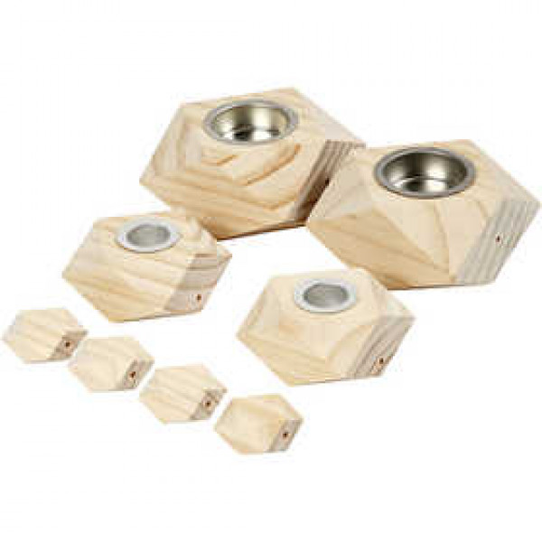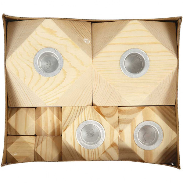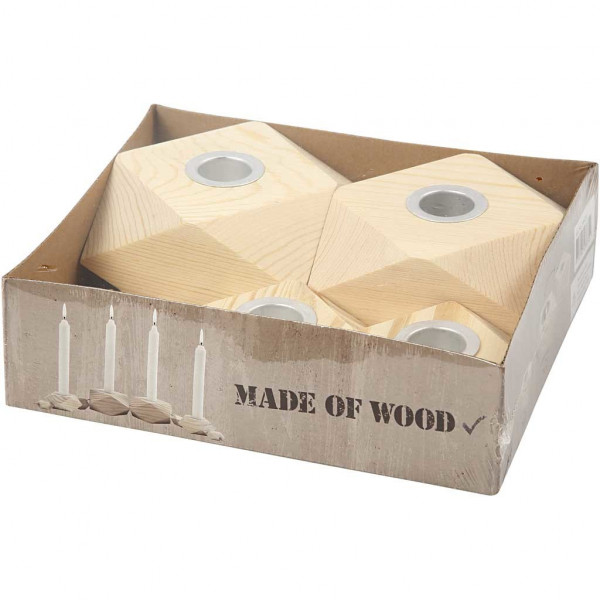 Candle Holders, H: 3.4+5 cm, D: 6.2+9 cm, 1 set, pine [HOB-56429]
