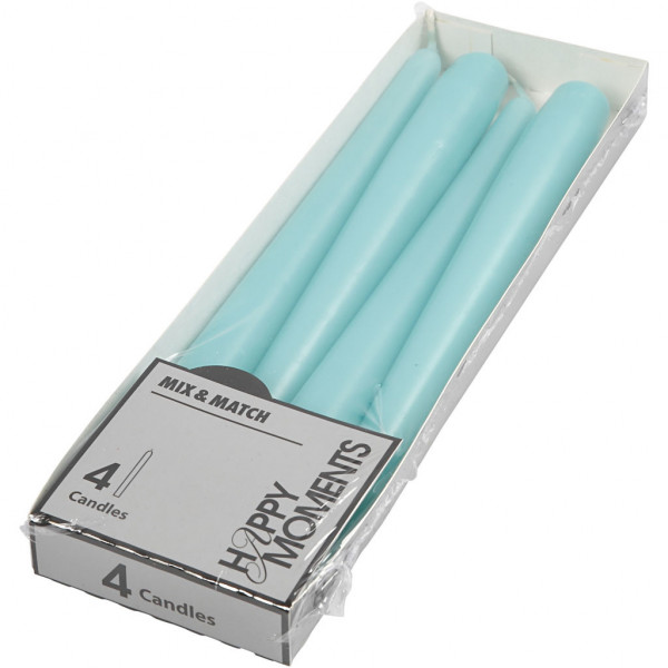 Candles, D: 2.2 cm, H: 24.5 cm, 4 pcs, turquoise [HOB-597008]