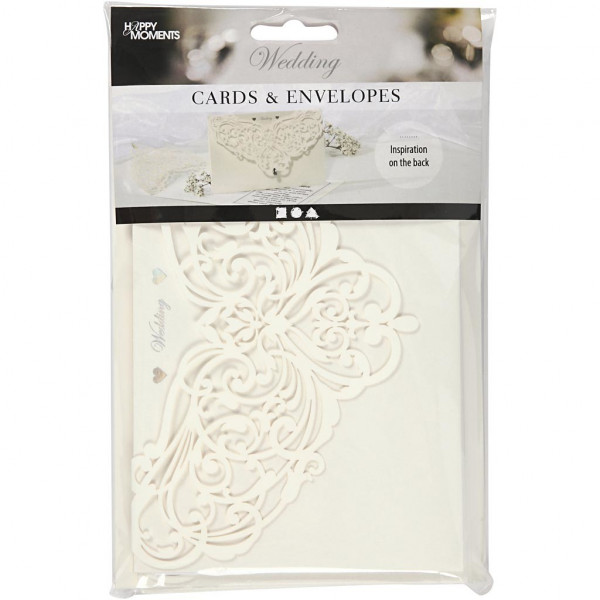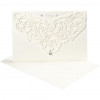 Exclusive, double card with fine carvings, printed "wedding" and includes adhesive rhinestones.