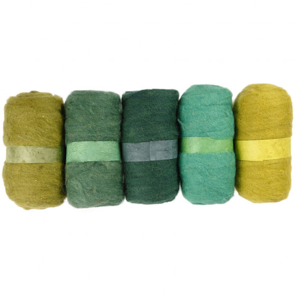 Carded Wool, 5x100 g, green harmony [HOB-45122]