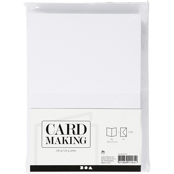 Cards and Envelopes, card size 10.5x15 cm, envelope size 11.5x16.5 cm, 50 sets, white [HOB-23111]