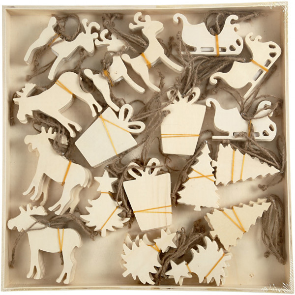 Ornament of light wood in 6 different designs.