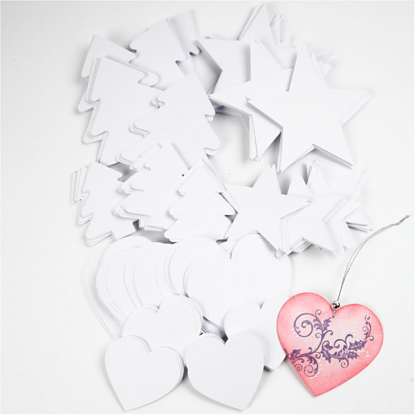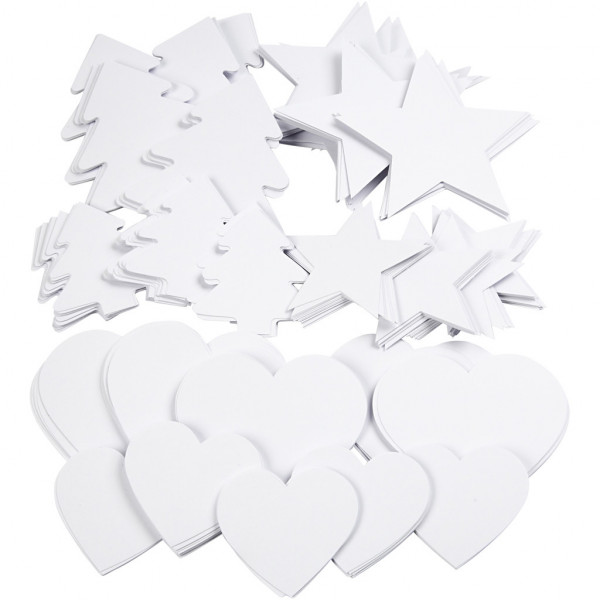 100 pcs. stars, 100 pcs. hearts and 100 pcs. christmas trees.