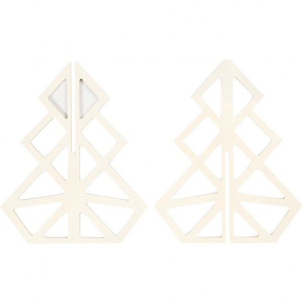 Bright Christmas tree in a geometric shaped design of 3mm thick wood. Assembled by two parts with a slit.