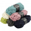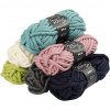 An assortment of yarn of 100% acrylic. 3 sts x 5 rows = 10 x 10cm on needle size 20mm (armstrap also possible). Wash by hand at max 30°C. Content: 6 different colours each of 200g balls.