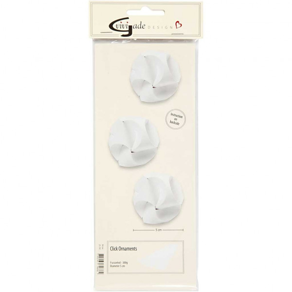 Click Ornaments, size 3.5x8.8 cm, D: 5 cm, 9 sets, white [HOB-25141]