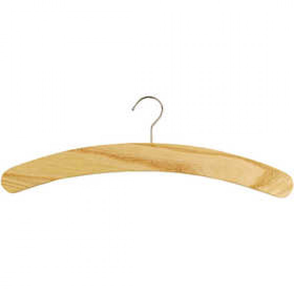 Heavy wood hanger with rounded edges.