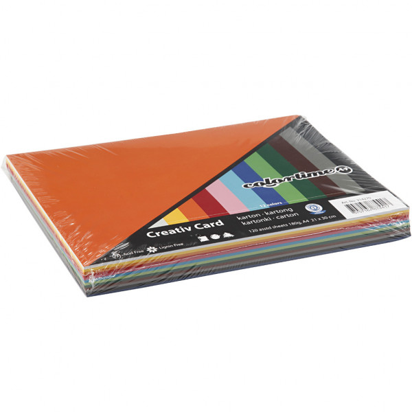 Coloured Card, A4 210x297 mm, 180 g, 120 mixed sheets [HOB-214270]