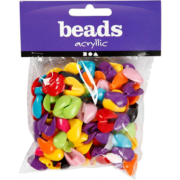 Two-piece, acrylic beads in 9 beautiful colours.