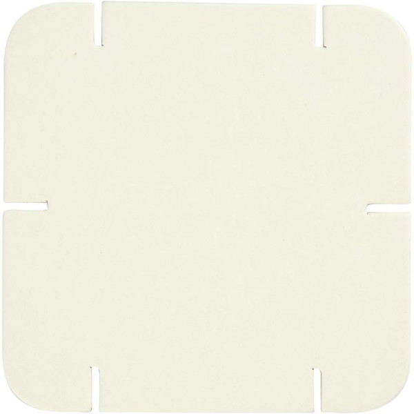 Square pieces made of heavy cardboard with matt surface and grooves along the edges.