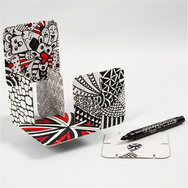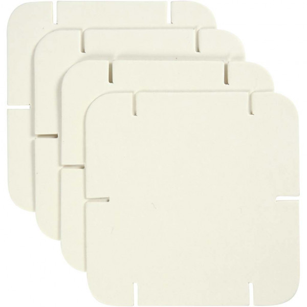 Square pieces made of heavy card with matt surface and grooves along the edges.