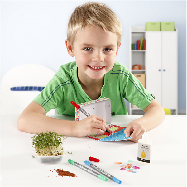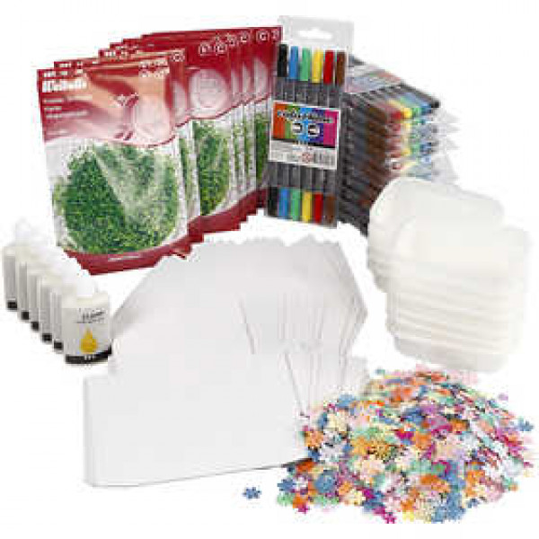 Contents: 24 pcs. cress trays 8 bags cress seeds, 12 packs Colortime markers, flowers sequins and 6 pcs. Clear Multi Glue Gel.