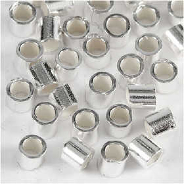 Crimp Tubes, D: 2 mm, 50 pcs, sterling silver [HOB-60879]