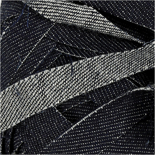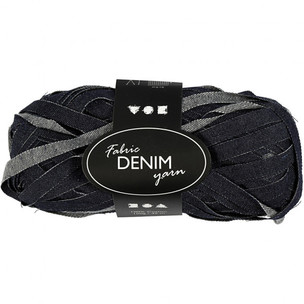 Denim fabric yarn made from 100% cotton. It's particularly suitable for thick knitting or crocheting of, for example, home interiors, bags etc. 12 sts x 12 sts = 10x10cm using size 3-4 needles. Wash at 40°C.
