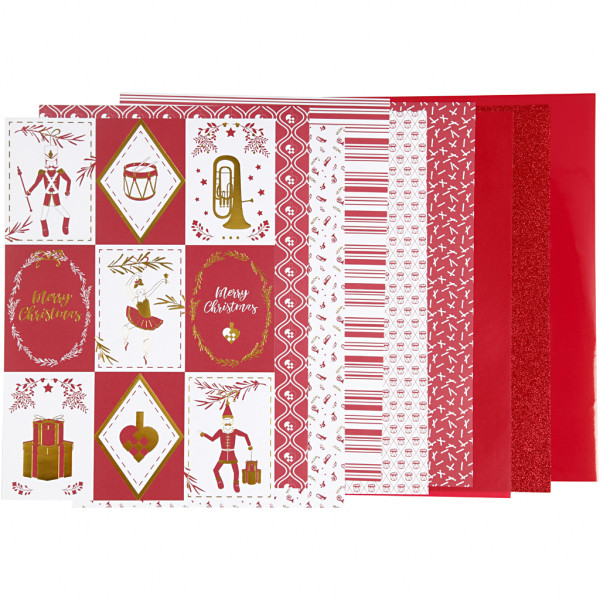 Contents: 6 design with 1-sided printing on 3 sheets (120 g / m2), 2 sheets of lacquer printed on both sides (128 g / m2) and 2 sheets of glitter print on both sides (128 g / m2) - total 24 sheet.