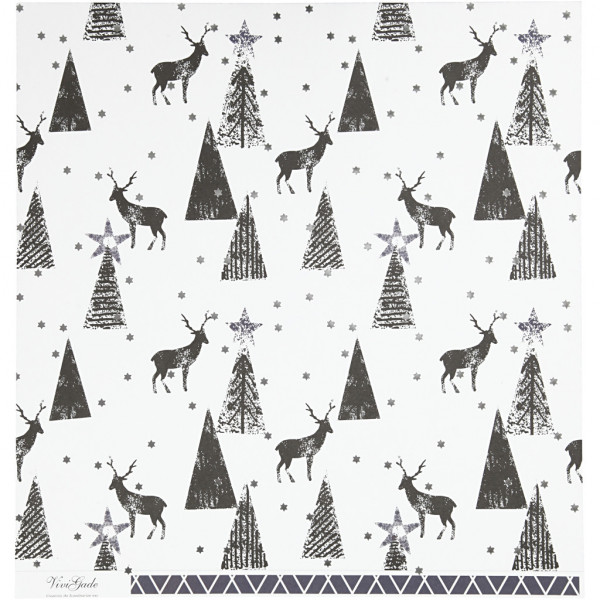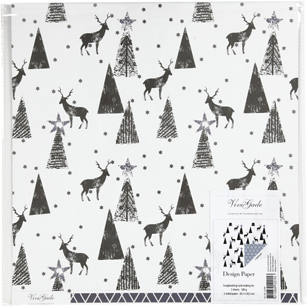 Design Paper, sheet 30.5x30.5 cm, 180 g, 3 sheets, white, silver, black [HOB-22509]