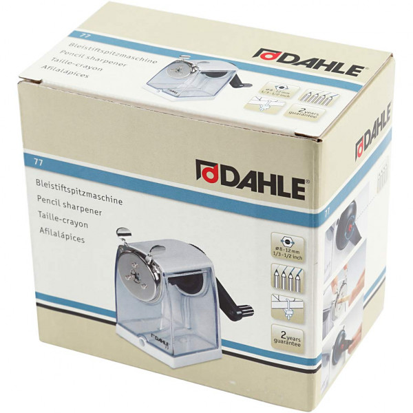 Pencil sharpening machine in metal from Dahle. Sharpens pencils up to 12mm.