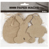 Flat, hand-made papier-mâché Easter hanging decorations.