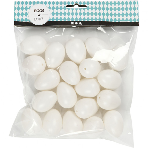 Egg, H: 4 cm, hole size 2 mm, 20 pcs, white [HOB-510301]