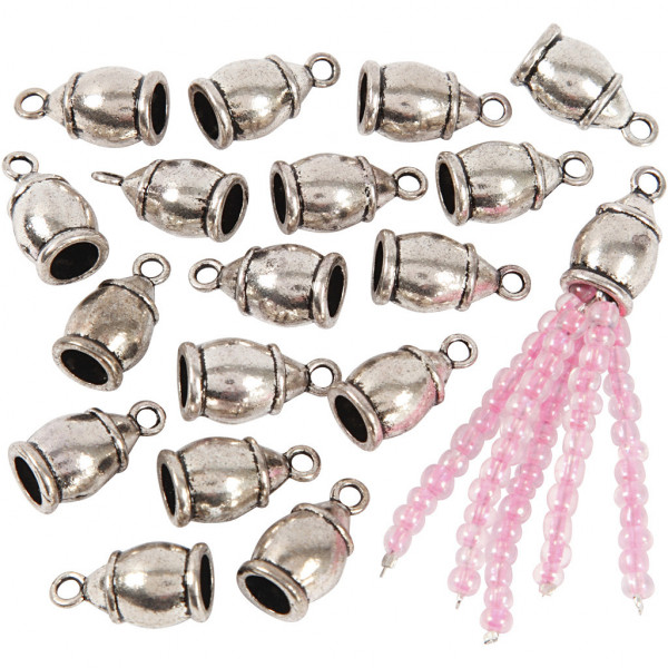 End Caps, size 11x20 mm, hole size 6 mm, 40 pcs, antique silver [HOB-63733]