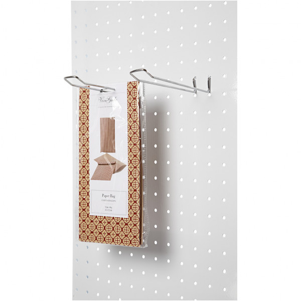 Euro pegboard hooks, chrome mounting of perforated plates.
