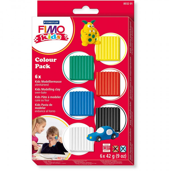 FIMO® Kids Clay, 6x42 g, standard colours [HOB-78536]