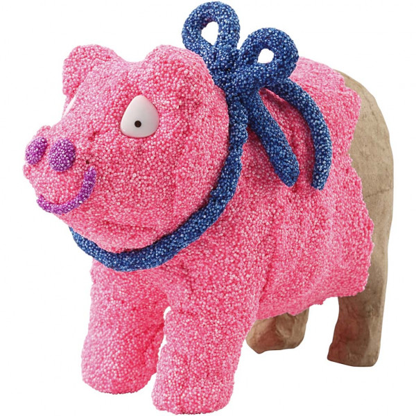 Self-hardening modelling material with small beads ideal for coating/modelling around various craft materials.