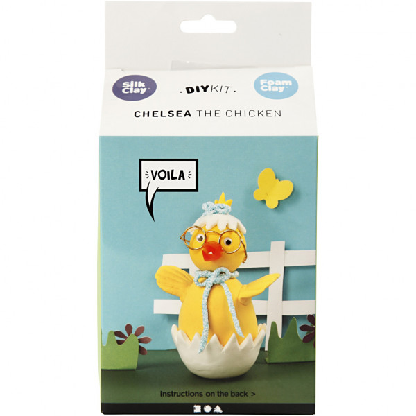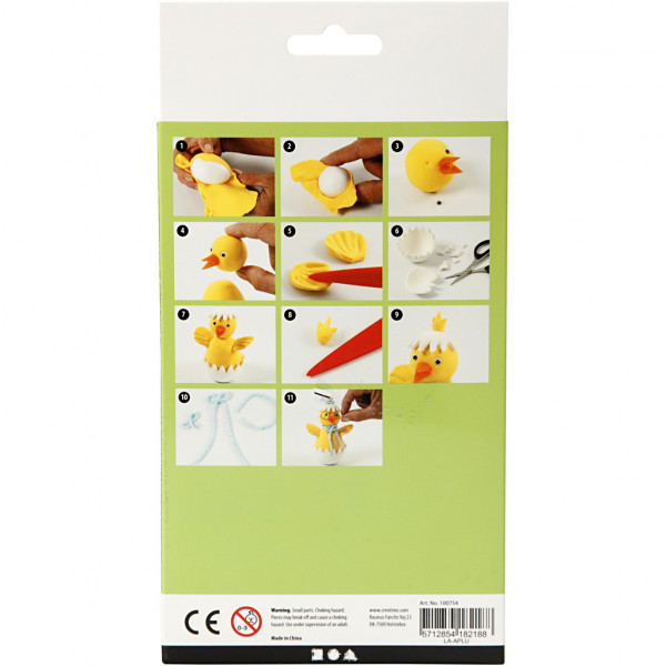 Contents: 2 different colours Silk Clay, 1 colour Foam Clay glitter, polystyrene egg and ball, beak, eyes and glasses.