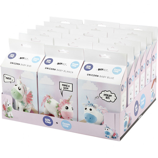 An assortment of kits with all the materials needed to make funny figures using Silk Clay® and Foam Clay®.