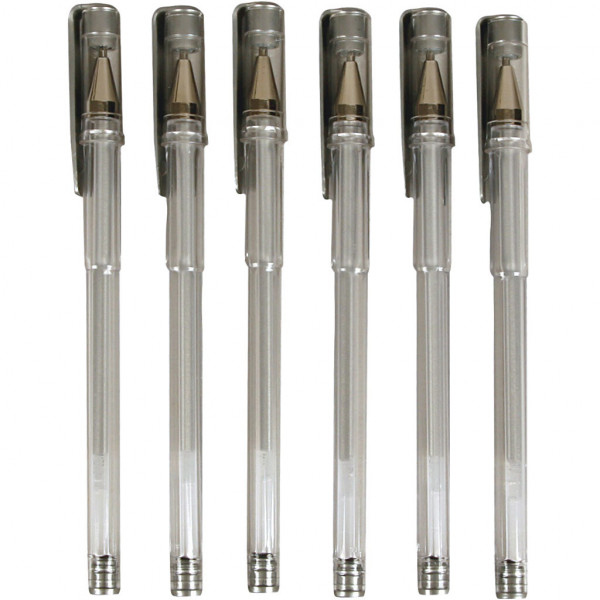 Gel Pens, line width: 0.8 mm, 6 pcs, silver [HOB-25109]