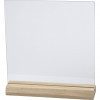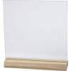 Transparent glass plate with smooth edges and a loose wooden holder.