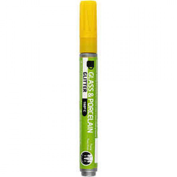 Semi-transparent, water based glass and Porcelain marker with glitter for both glass, metal and porcelain.