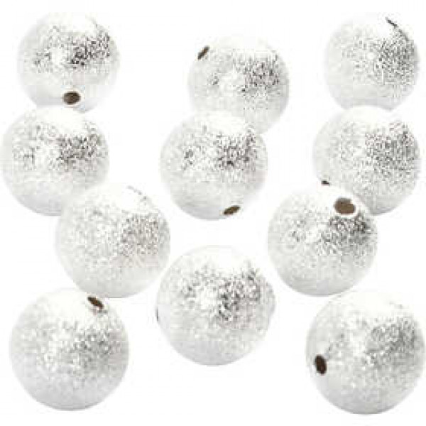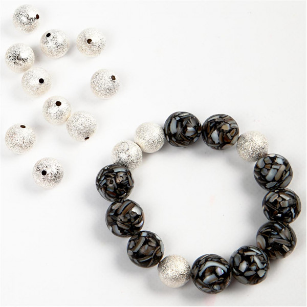 Glitter Bead, D: 12 mm, hole size 1 mm, 20 pcs, silver-plated [HOB-60668]