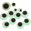 Adhesive eyes of luminous, round slices in three sizes with pupils that can roll.