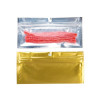 Our line of hanging zipper barrier bags have strong side seams, a heat sealable closure, and come stock without tear notches making them tamper resistant. The HZBB9CG bag has usable space measuring 50 x 50mm and comes pre-opened for efficient loading of your flavored, scented and food safe items. A 6mm round hang hole makes this a convenient option for the retail environment. The front panel is clear to display content while a gold backing provides space to illuminate your brand label or product details. Zip closure prevents airflow so your contents maintain freshness. Holds grams/capsules.