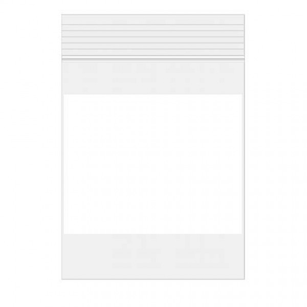 Gripseal bag. Crystal clear 50 micron bag. With white surface for easy marking. Price is per bundle of 100 pieces. Size: 7,5x10 cm.