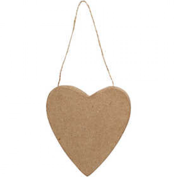 Papier-mâché heart with jute string for hanging.
