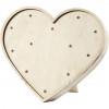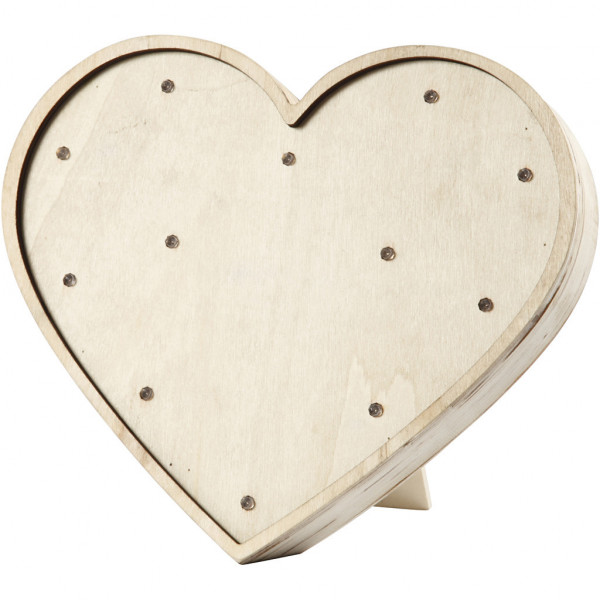 Heart, made of light wood with 12 integrated, small bulbs at the front, producing a golden light. Is fitted with the back support foot.