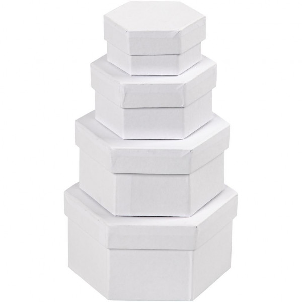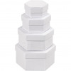 Hexagonal Boxes, D: 6.5+8+10+12 cm, H: 4+5+6+7 cm, 4 pcs, white [HOB-264070]