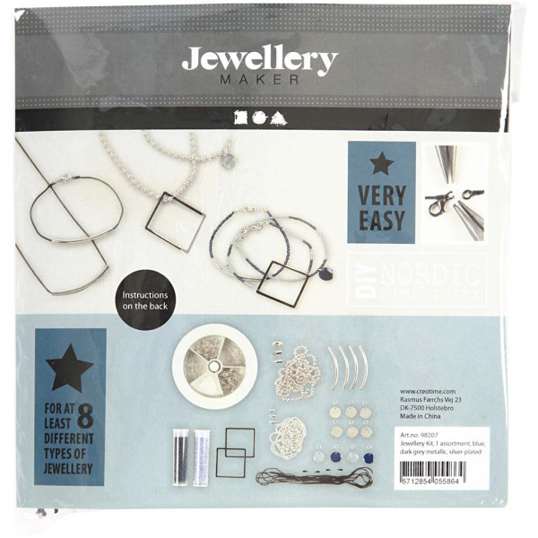 Jewellery Kit - Nordic Simplicity, 1 asstment, blue, dark grey metallic, silver-plated [HOB-98207]