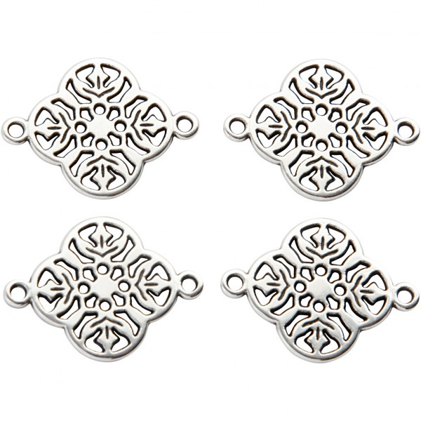 Jewellery Pendant, D: 15 mm, hole size 1.2 mm, 4 pcs, silver-plated [HOB-61174]