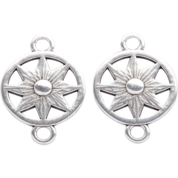 Jewellery Pendant, D: 15 mm, hole size 2.5 mm, 2 pcs, silver-plated [HOB-61172]