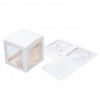 Our Kraft boxes with ornate windows provide an upscale look for baked goods. The WGWG348 white Kraft Box with ornate windows measures 7.5x7.5x7.5 cm and is designed to hold a single cake pop. A clear 3-sided window gives customers a view of what's inside the box while the scalloped edges offer a sophisticated touch. An optional hole at the top provides an opening for a dessert stick or can remain closed to package mini cupcakes, bite-size cookies, or loose candy. The interior lining offers a grease-resistant surface for easy loading of baked goods. Assembly is easy with an auto-forming bottom that snaps into place. Shape box along soft folds. FDA approved.