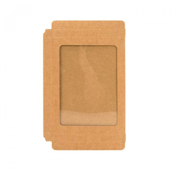 Our Kraft Paper Boxes with Attached PET sheets are ideal for packaging food products, stationery, and gifts. WKRG246 has outer dimensions of 95 x 22 x 132mm and a window opening that measures 75 x110mm. This natural brown box is a great fit for products like candy, cookies, artisan chocolates, as well as cosmetics and jewelry. It has a depth of 20mm and can hold 10-12 A1, 4 Baronial card sets. This versatile box features a poly sheet made of 8 mil PET food-safe material that is attached to the inside of the box, providing a clear presentation of your product. The paper box is made from 300 gsm and from recycled materials, making this box an eco-friendly choice. Assemble along soft fold lines and secure tab to close.