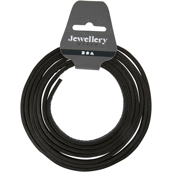 Leather band, W: 10 mm, thickness 3 mm, 2 m, black [HOB-51501]